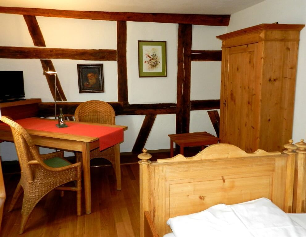 Unsere FeWo liegt im Erdgeschoss unseres historischen Gasthofs im Stadtkern von Iphofen.